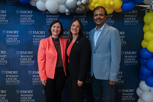 Colleen Lewis, MSN, ANP-BC, AOCNP, Winship senior vice president, cancer nursing, keynote speaker Jessica MacIntyre, DNP, MBA, APRN, AOCNP®, FAANP, and Suresh S. Ramalingam, MD, FACP, FASCO, Winship executive director.